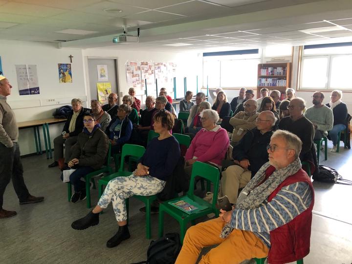 Mercredi 14 octobre, l'enseignement catholique de Lille, Arras et Cambrai s'est réuni au collège à Anzin-Saint-Aubin pour le lancement officiel du "label ouverture internationale" dans la province ecclésiale. Ce label natiaonal est délivré aux établissements catholiques qui mettent en œuvre des projets en lien avec l'apprentissage des langues, le dialogue inter-culturel, la mobilité et l'écologie intégrale. Après une présentation globale du label puis la remise de récompenses aux premiers lauréats, les participants ont pu déambuler dans les locaux pour rencontrer des acteurs, notamment ceux en lien avec l'écologie intégrale (fresque du climat, ma petite planète, etc...)