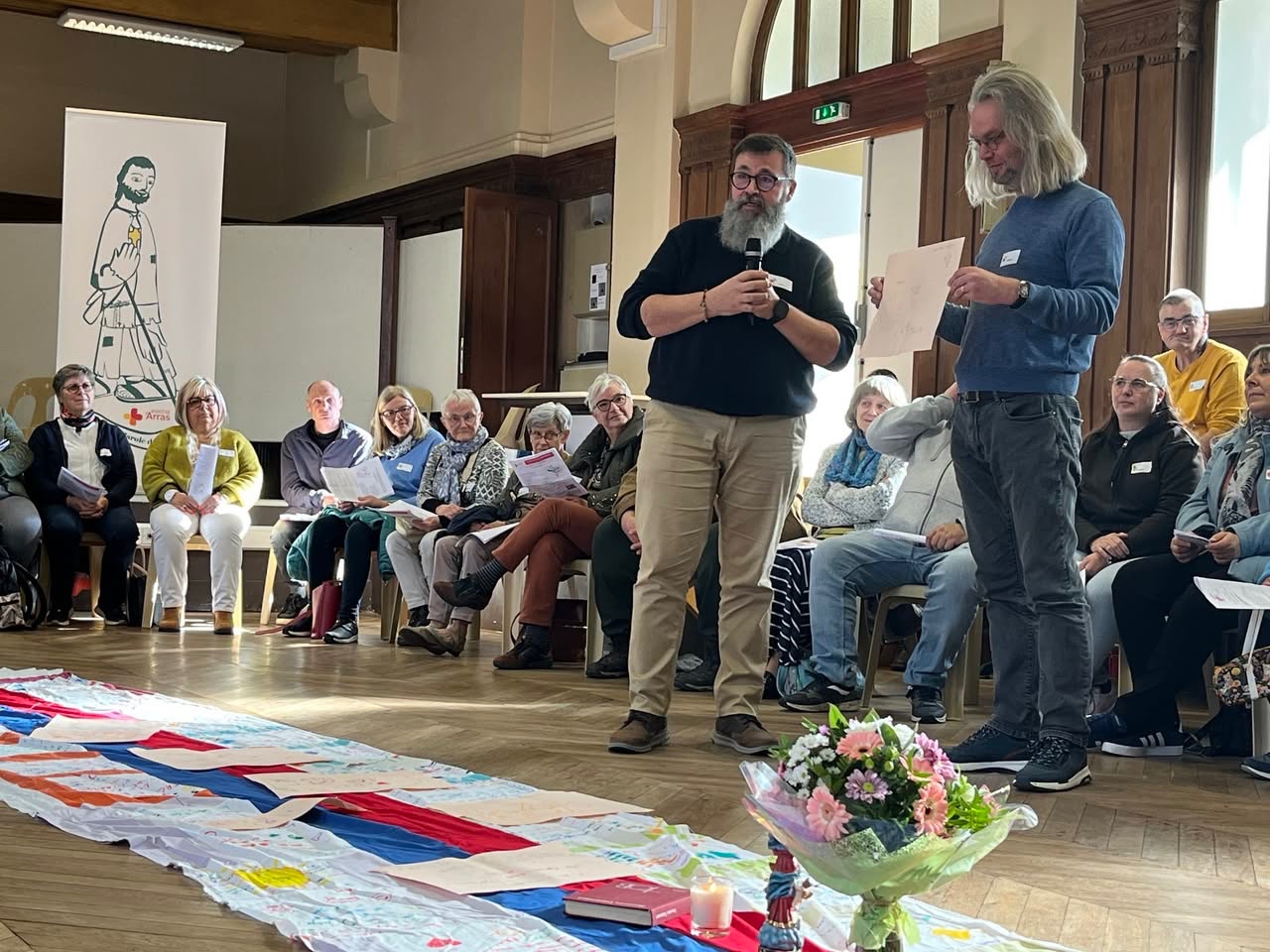 Malgré une météo peu favorable, plus de quatre-vingts personnes ont participé à cette journée au cours de laquelle se sont succédé des animations participatives : balade, escape game, fresque océane et du climat, ateliers témoignages, table ronde, temps de prière œcuménique. Les participants ont pu apprécier la présence et la participation active de nos frères et Soeurs protestants, celles d’acteurs de la solidarité auprès de nos frères exilés, la qualité des intervenants, la convivialité des partages et l’écoute respectueuse de la diversité des points de vue.