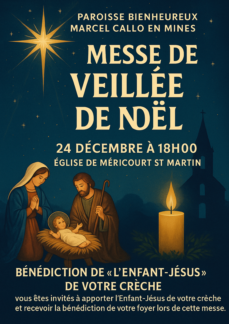 Nous vous invitons à la Veillée de NOEL qui se déroulrera cette année à l'Eglise SAINT MARTIN DE MERICOURT