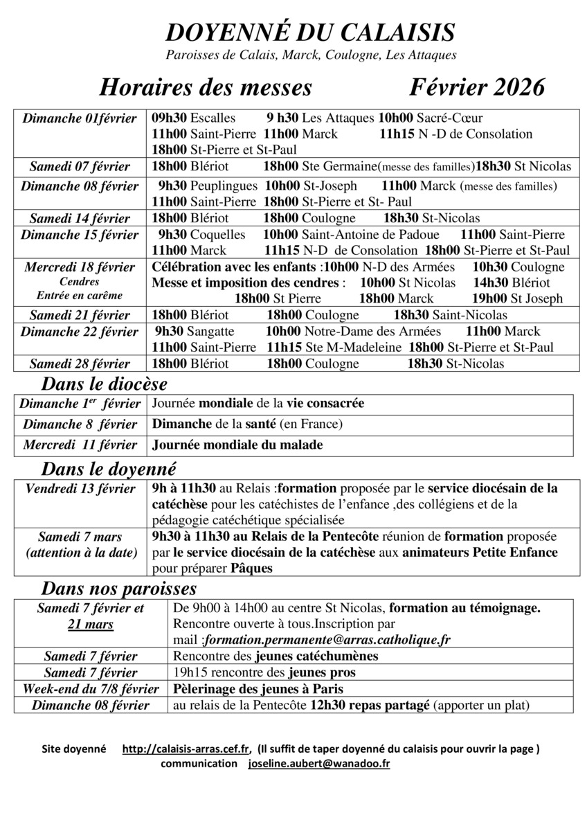 Messes et infos février secteur urbain