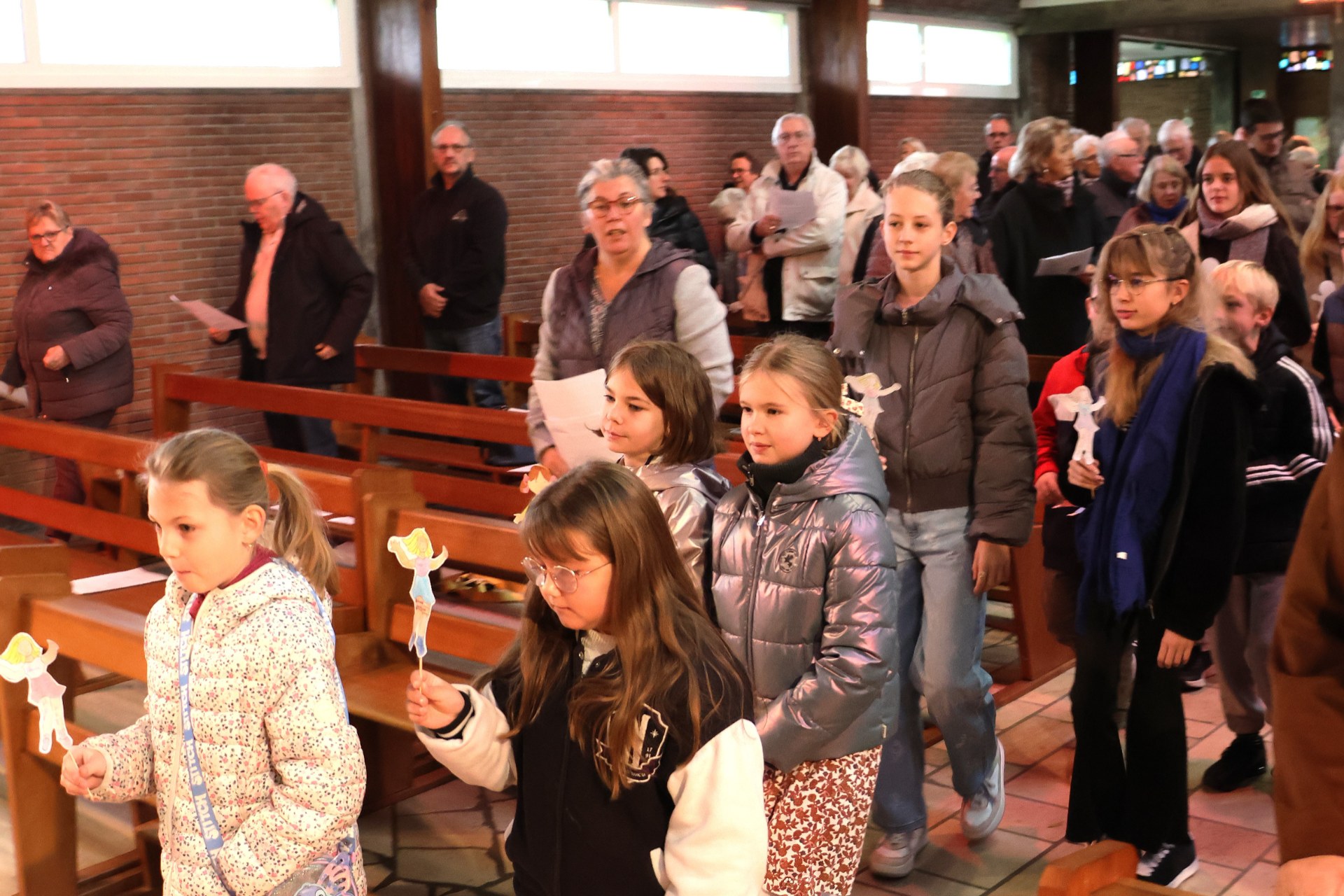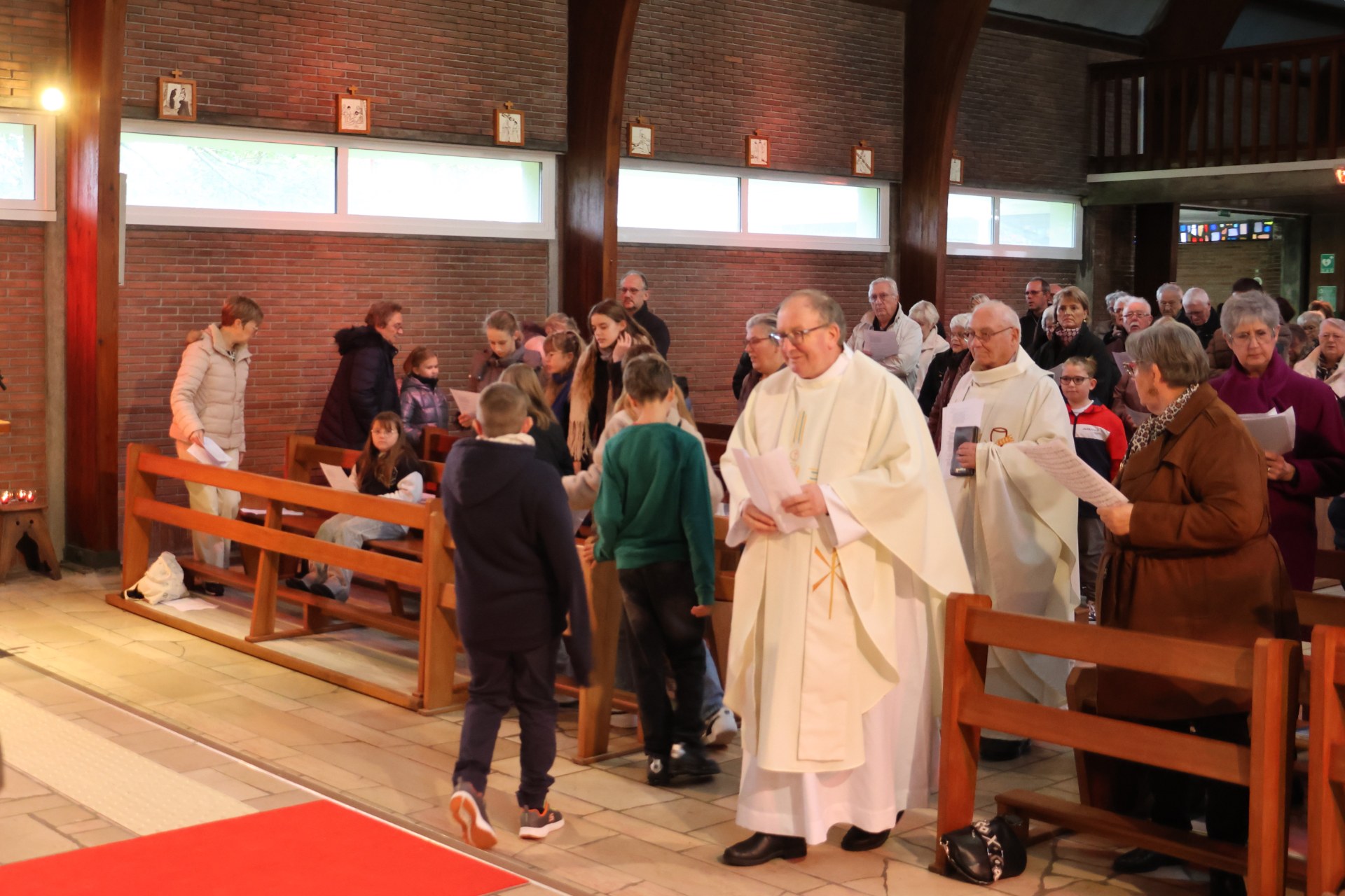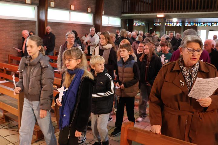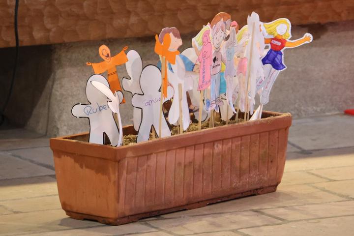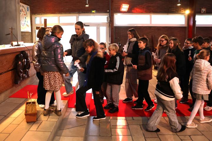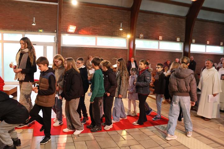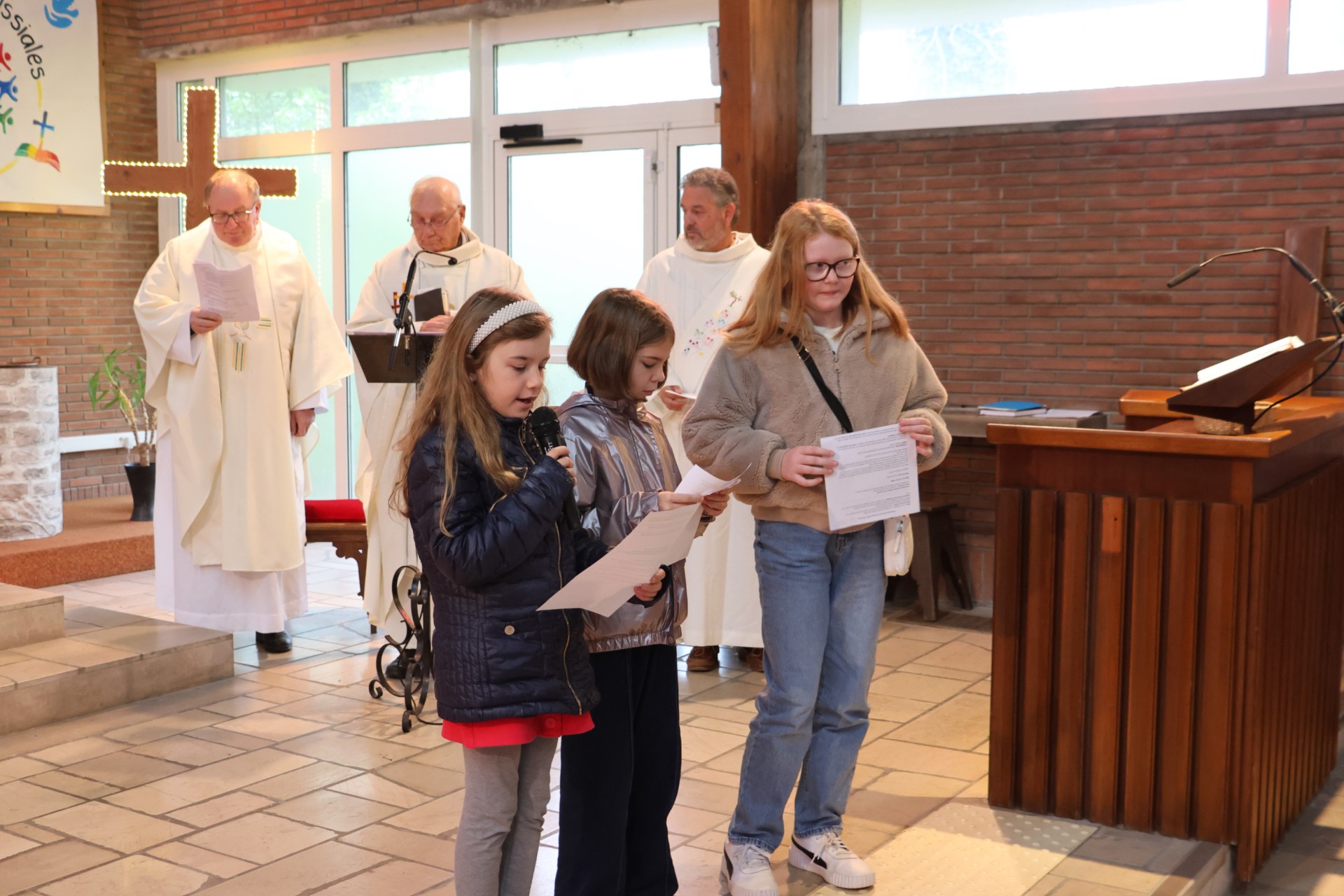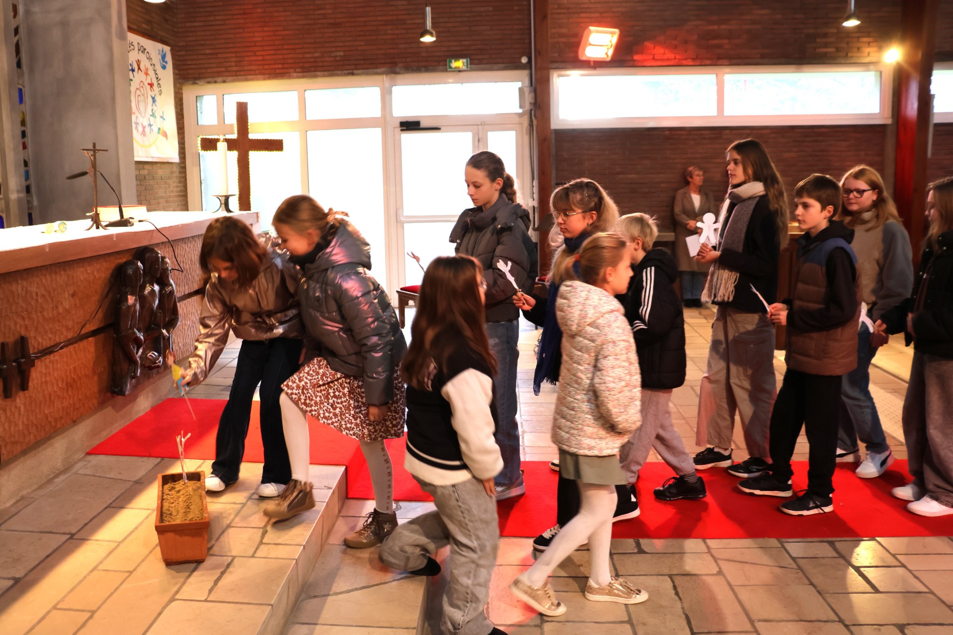 C'est pendant ce chant joyeux que s"avancèrent les enfants du caté pour déposer dans le choeur leur silhouette.