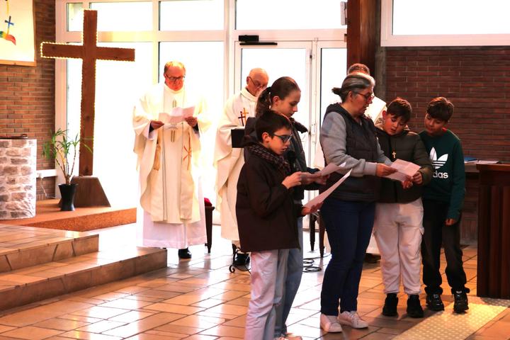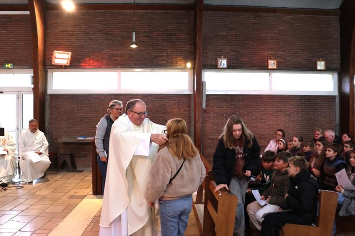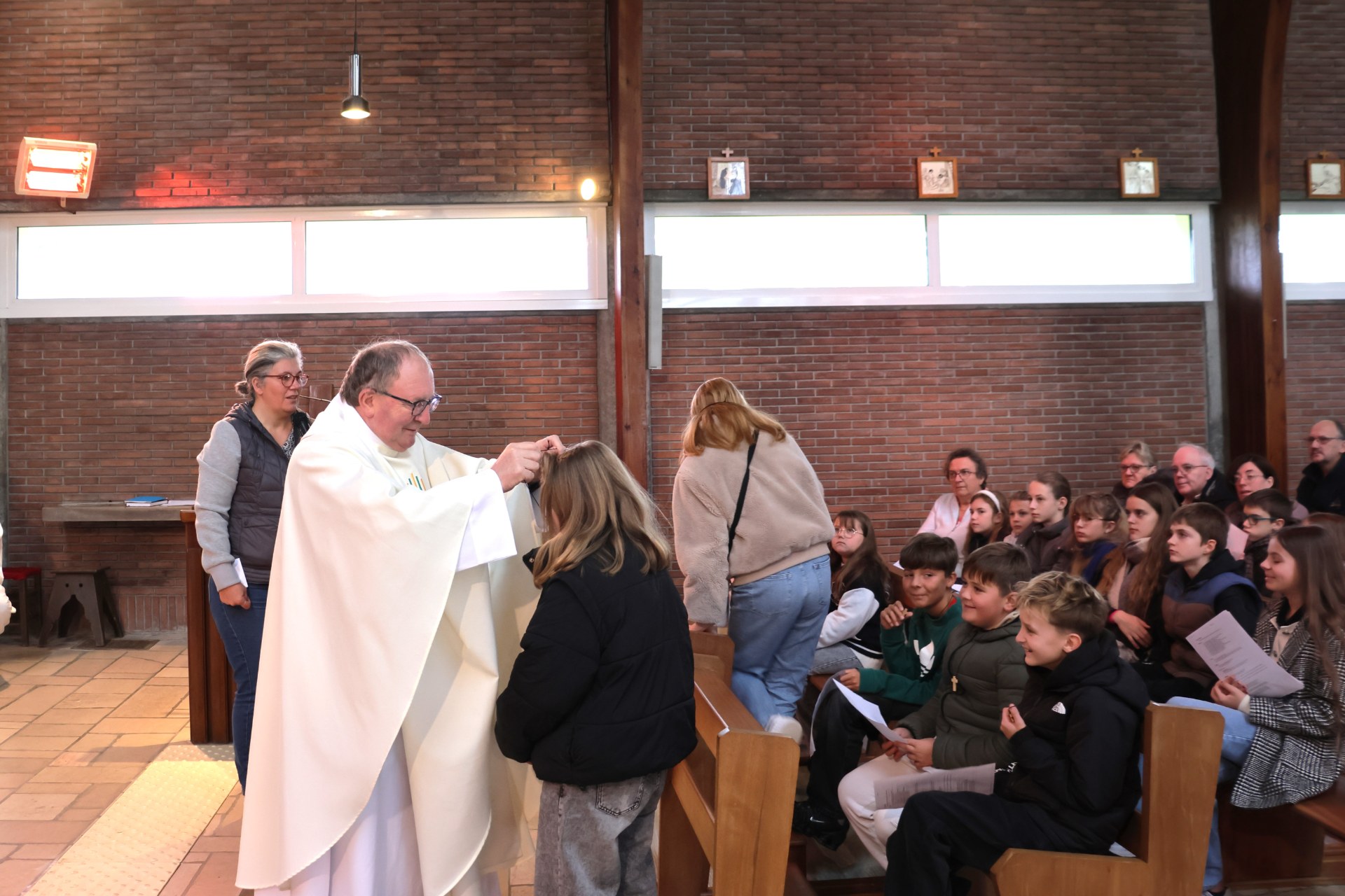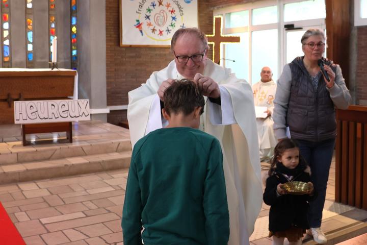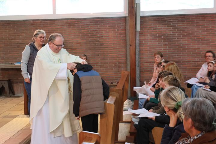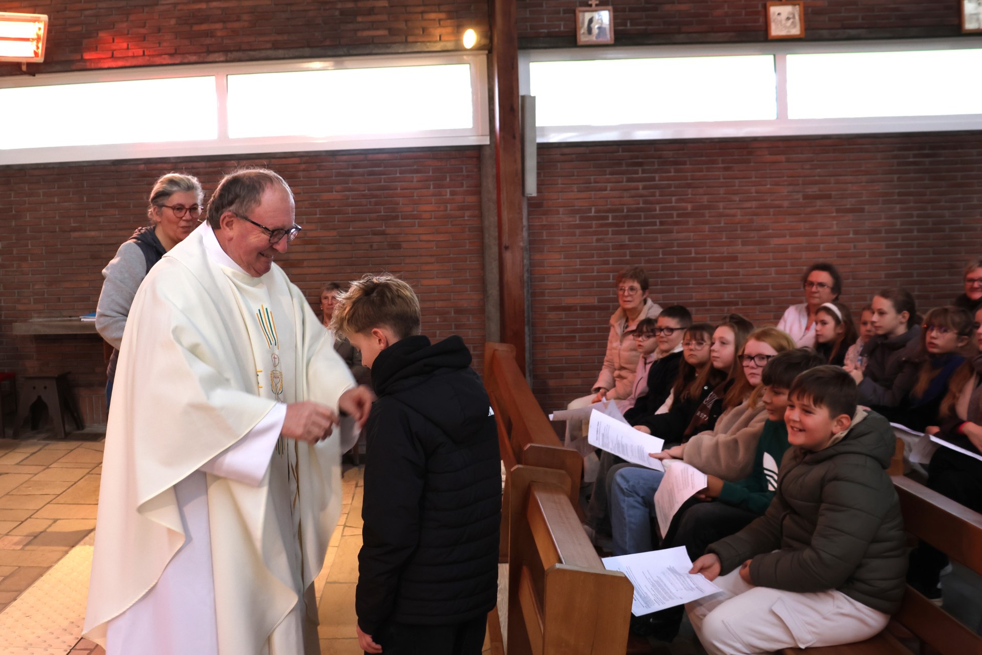 Après l'homélie, chaque enfant a reçu des mains de l'Abbé: une croix.