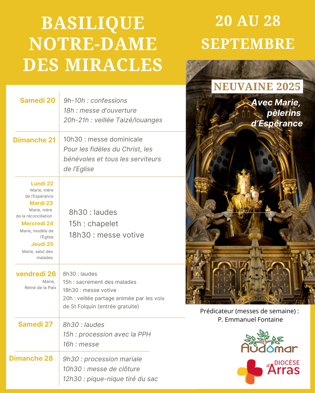 Retrouvez le programme de la Neuvaine à Notre Dame des Miracles qui débute ce samedi 20 septembre à Saint-Omer !
