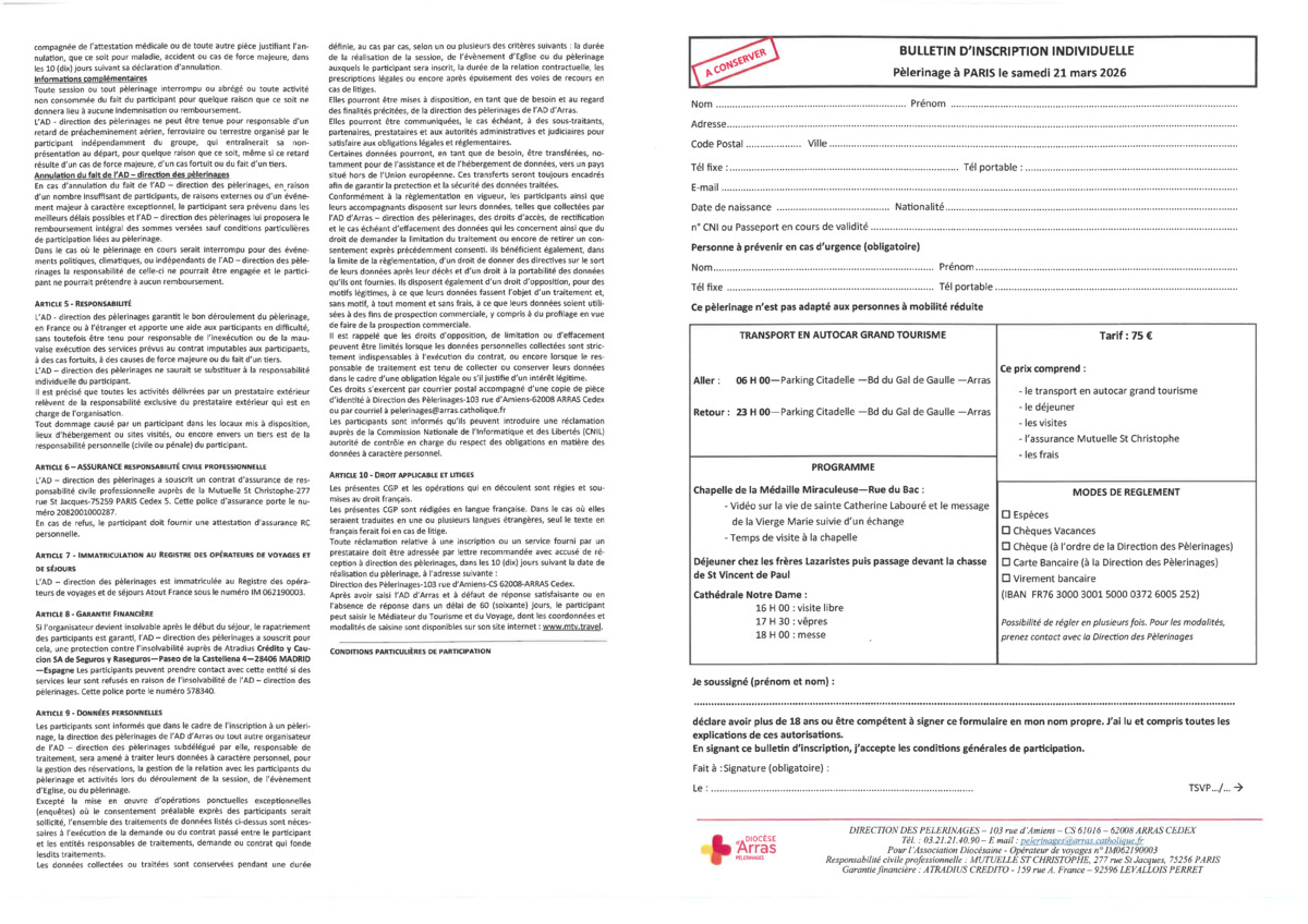 Pèlerinage au départ d'Arras en autocar grand tourisme.