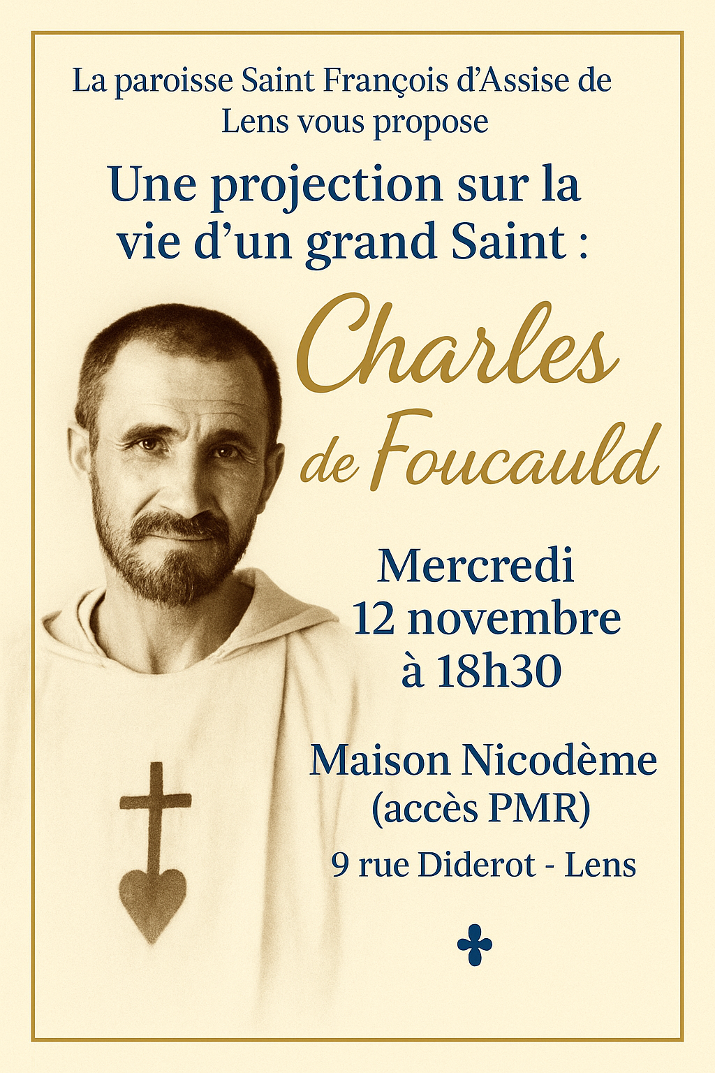 Soirée cinéma Projection sur la vie d'un grand Saint Charles de Foucauld le Mercredi 12 nov 2025 à 18h 30 Salle Jeanne d\'Arc projection