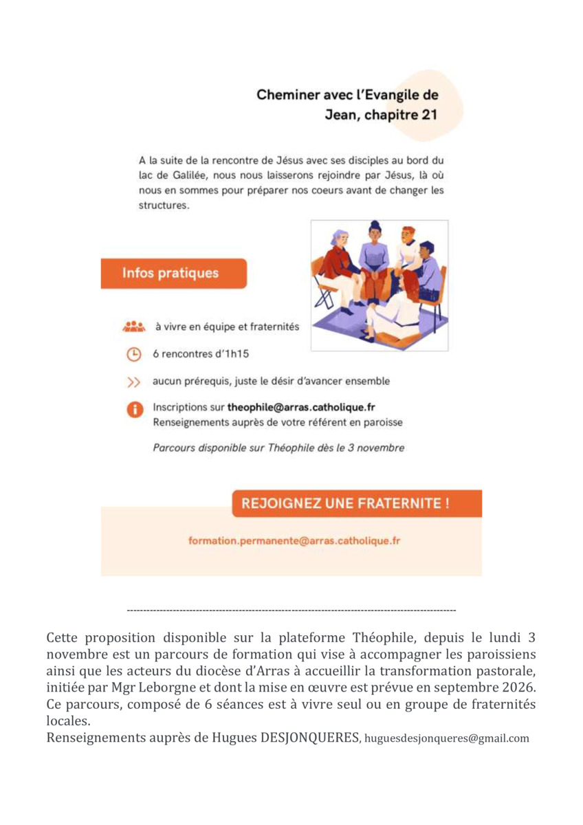 14h30 : prière du chapelet à Colembert 18h : formation des catéchistes Primaire à Samer, à la Maison Paroissiale |