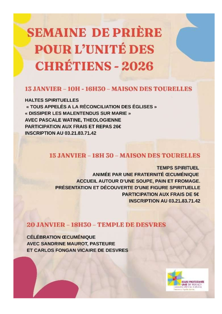 9h : prière du matin à La Calique 9h30 : messe à Samer 11h : messe à Saint-Antoine à Desvres de 14h à 17h : table ouverte partagée au local 27c rue du Pilbois à Desvres |
