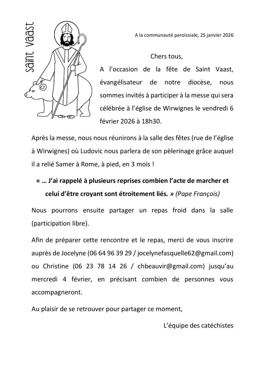 Célébration de la fête de saint Vaast pour les 2 paroisses