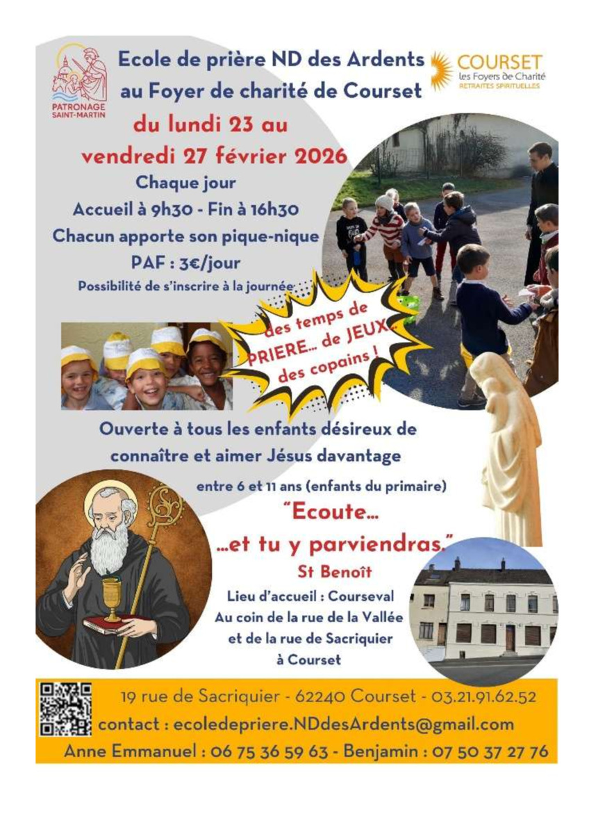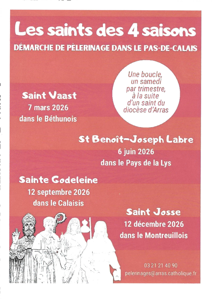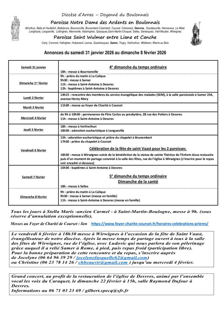 9h : prière du matin à La Calique 9h30 : messe à Samer 11h : messe à Saint-Antoine à Desvres 12h : baptêmes à Saint-Antoine à Desvres |