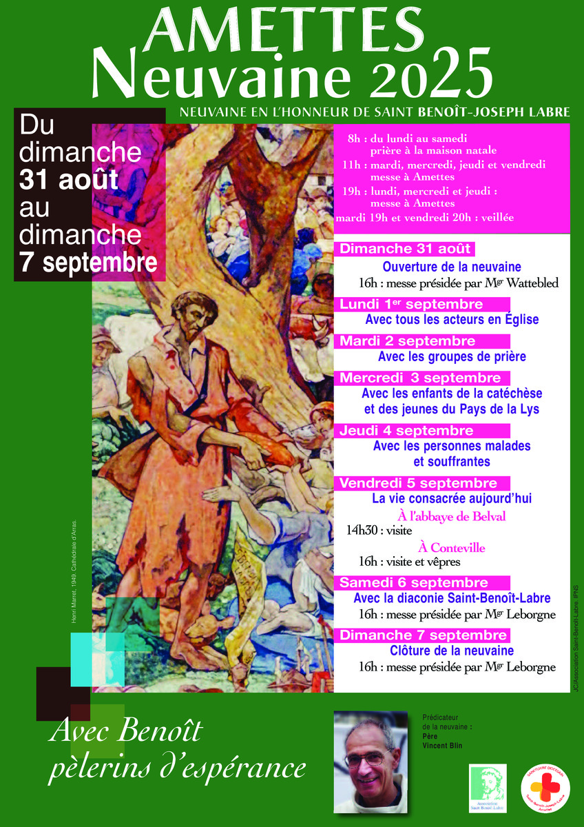 Retrouvons-nous à Amettes, durant cette neuvaine 2025, pour réapprendre de saint Benoît Joseph Labre l’essence-même de l’espérance chrétienne, et avancer avec lui dans la joie d’éprouver la miséricorde de notre Dieu !"