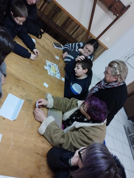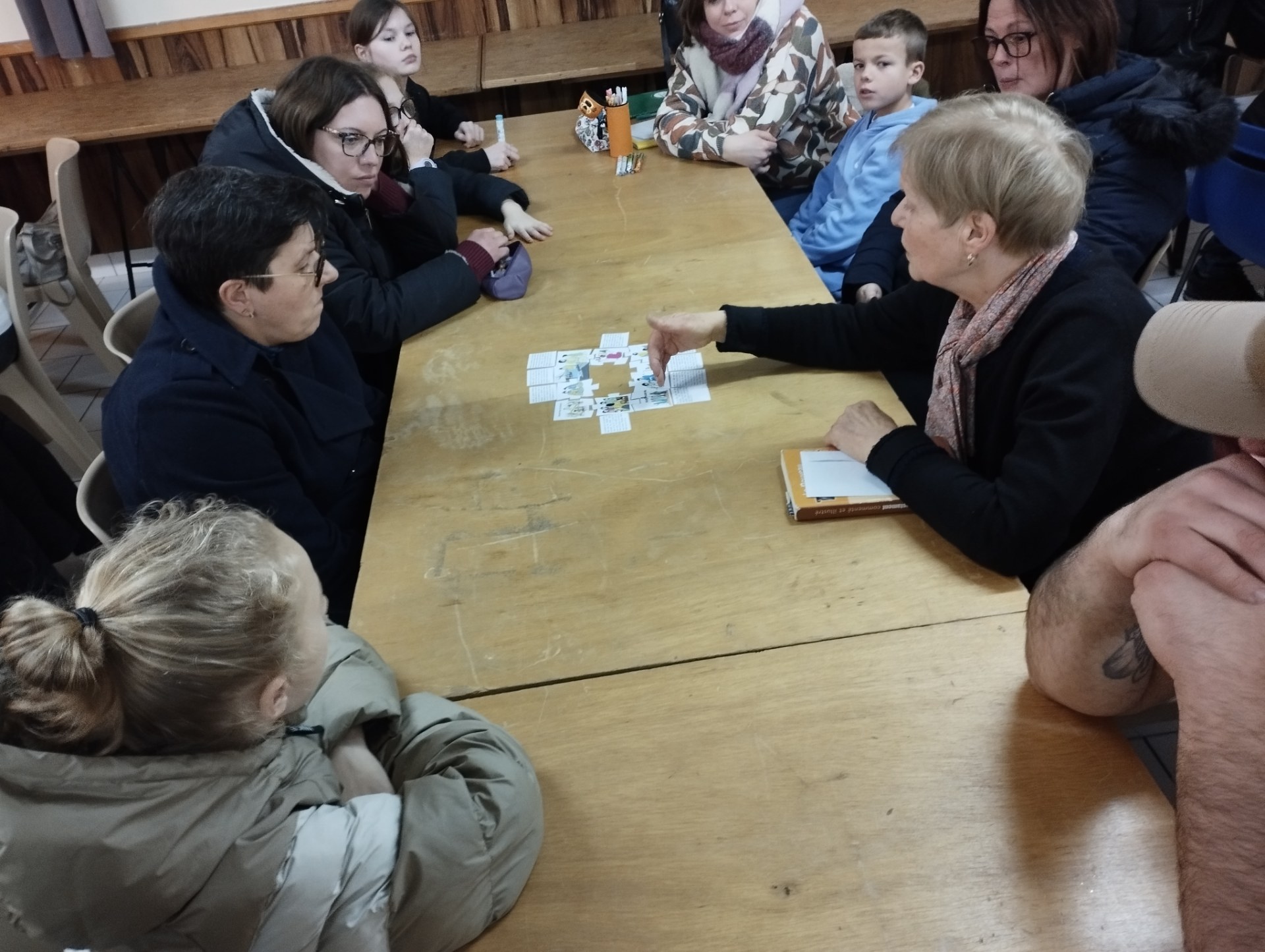 La réunion s’est passée autour de moyens pédagogiques ; les croix que nous voyons dans notre univers, un puzzle représentant divers épisodes de la vie de Jésus… Occasion d’ouvrir l’Evangile et de chercher. Comme on le voit sur les photos,les passages d’Evangile présentent le lavement des pieds, la guérison de Barthimée, l’accueil des enfants par Jésus, le pardon de la femme pécheresse, la mort de Jésus sur la croix, la paix du Ressuscité…