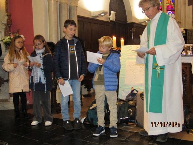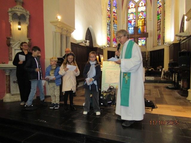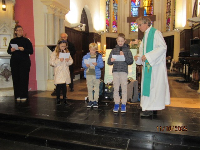 Ce 12 Octobre à Barlin et Bouvigny, les familles sont venues en nombre pour la bénédiction des cartables. L’Evangile était tout à fait adapté à cette bénédiction :les 10 lépreux guéris (Luc 17, 11 – 19) Un seul revient pour louer Dieu et reconnaître Jésus comme le sauveur !