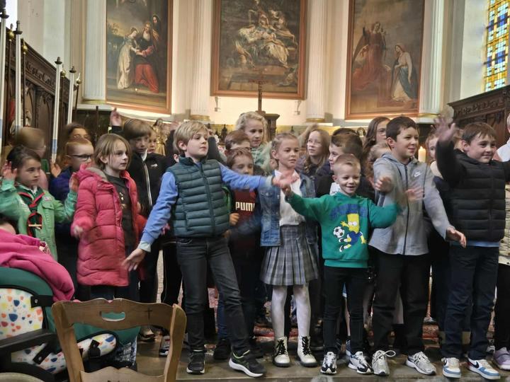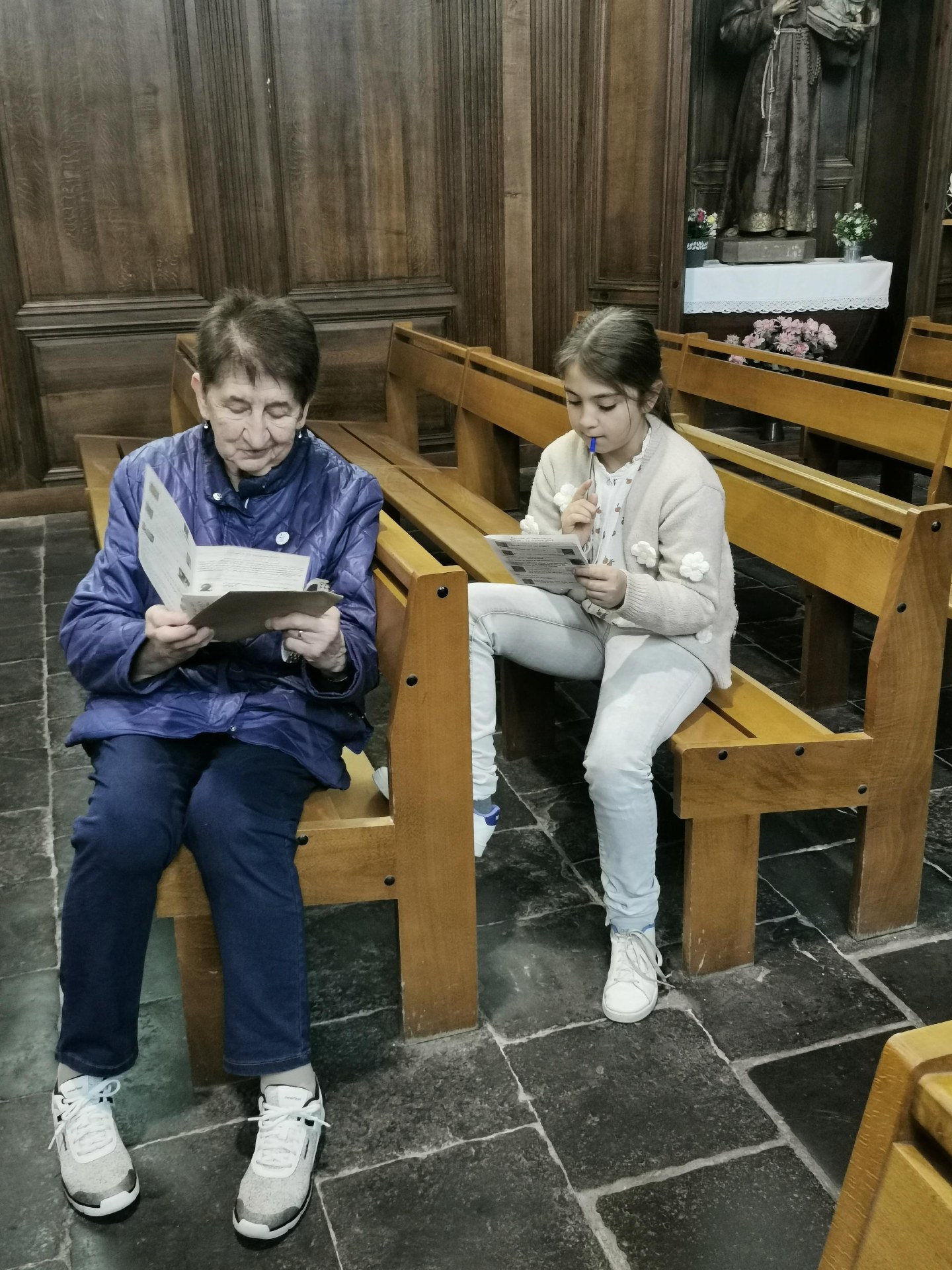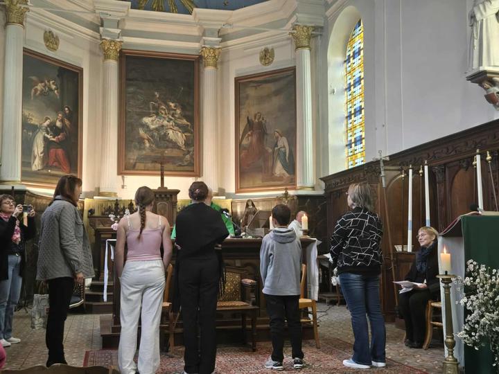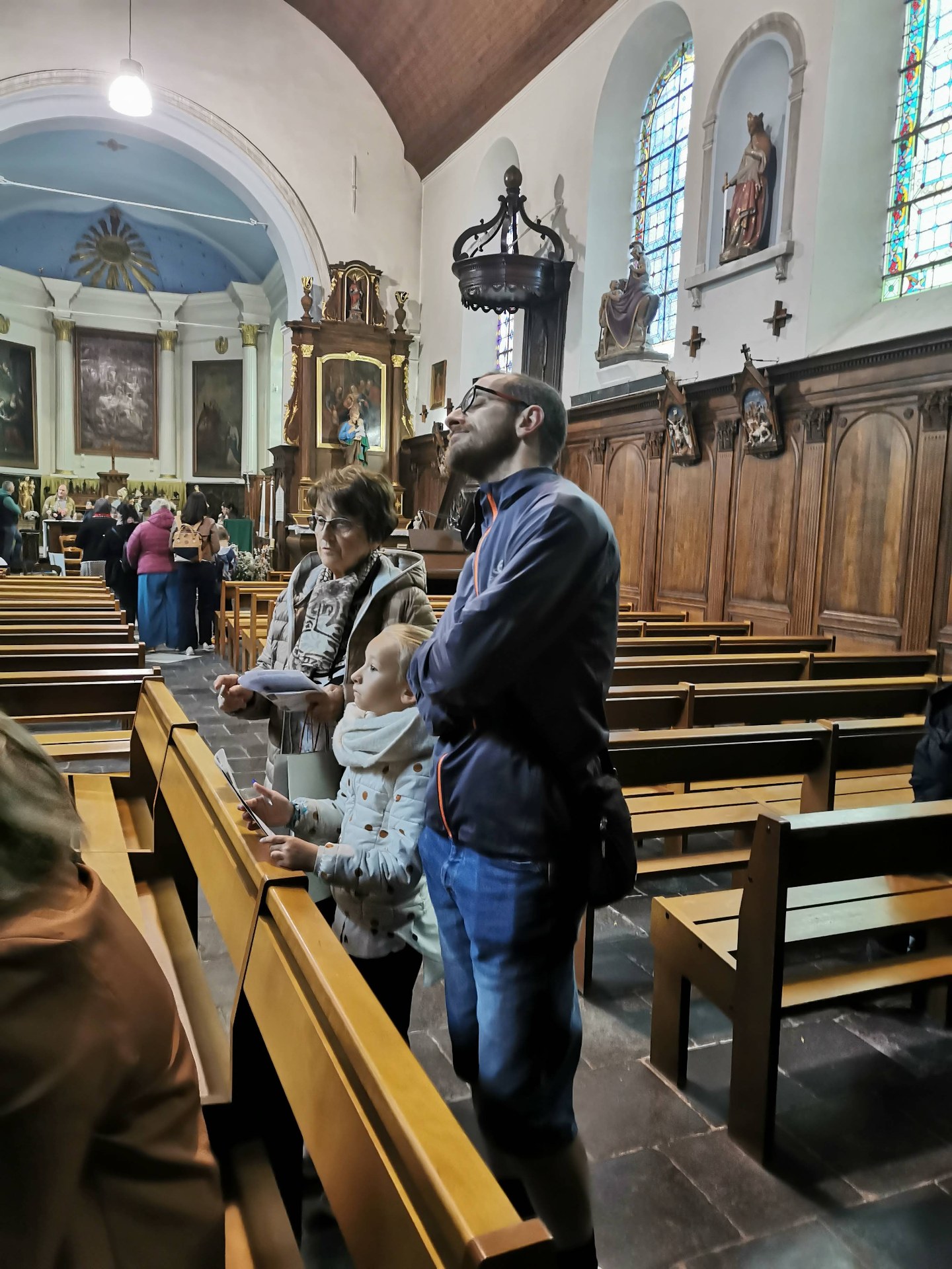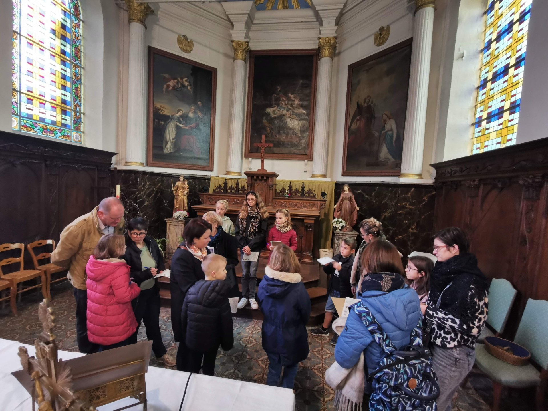 Jeu de piste dans l'église de Dièval pour les jeunes du caté et leur parents.
