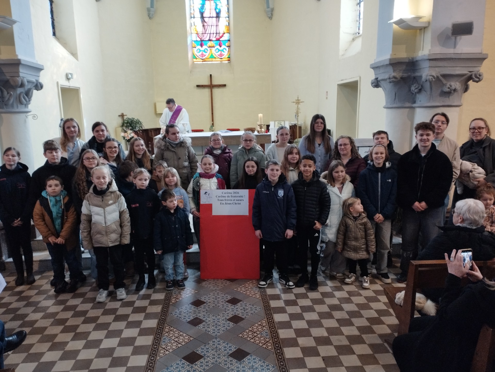 Dans cette perspective, nous sommes invités à identifier ce qui nous empêche d’aimer, ce qui est quelquefois cendres, inconsistance dans nos vies: jalousie, médisance, écrans, portables, … Les jeunes ont écrit tous ces éléments sur un papier … Bien évidemment, nous avons reçu les cendres marquant notre entrée dans le carême…