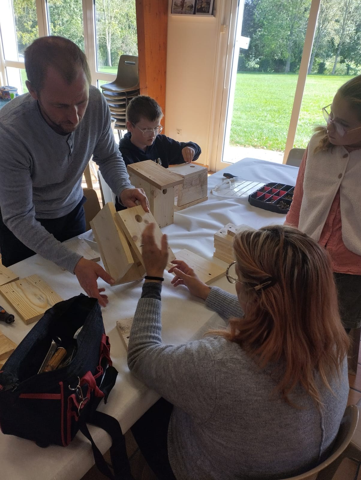 Stéphane Leleu a proposé une marche méditative de 5km, certains ont réfléchi à l’intérêt d’une haie sèche démarrée au fond du terrain, d’autres ont construit des nichoirs, des hôtels à insectes, appris à reconnaitre les chants des oiseaux et participé à un temps d’expression artistique.