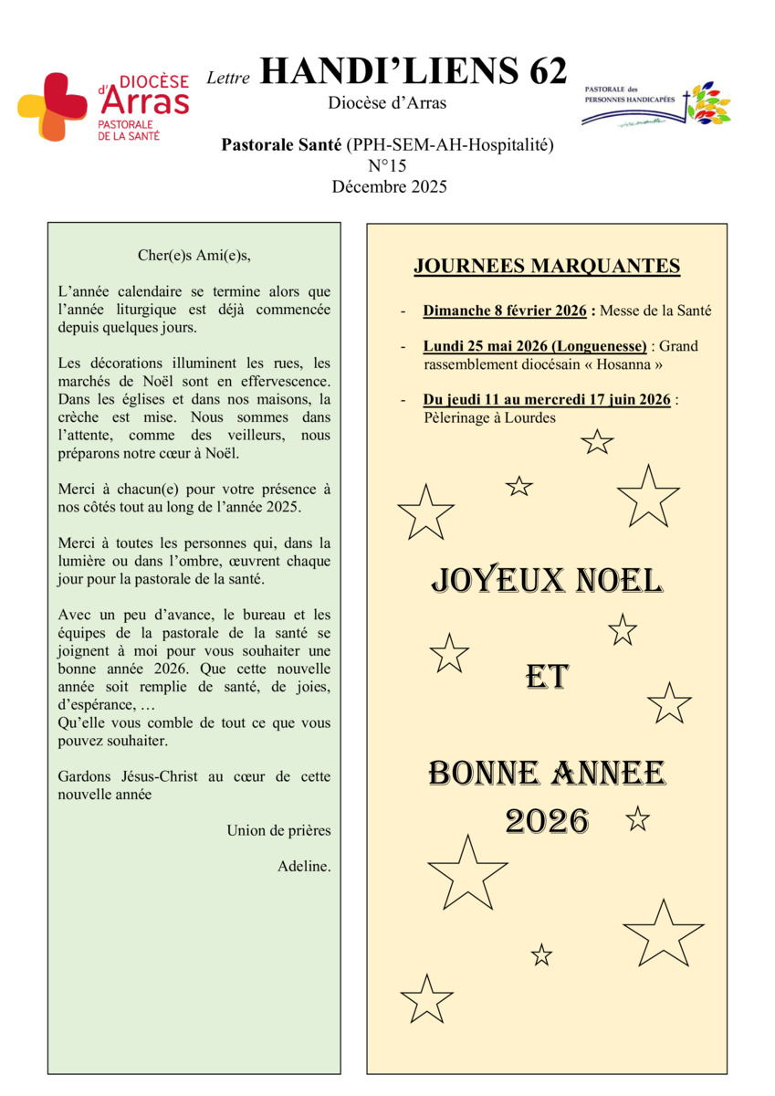 Le numéro 15 de la lettre d'infos de la Pastorale des personnes handicapées vient de sortir !