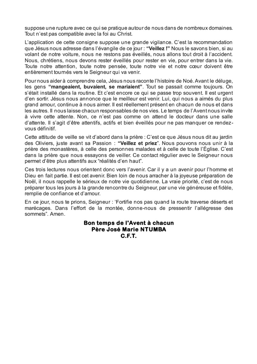 Homélie du Père José Marie NTMBA/Cft
