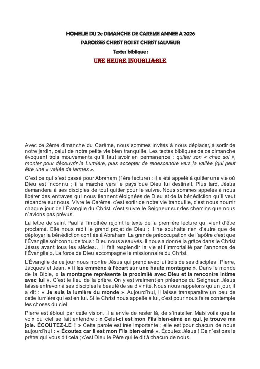 Homélie du 2ème dimanche de carême Année A 2026