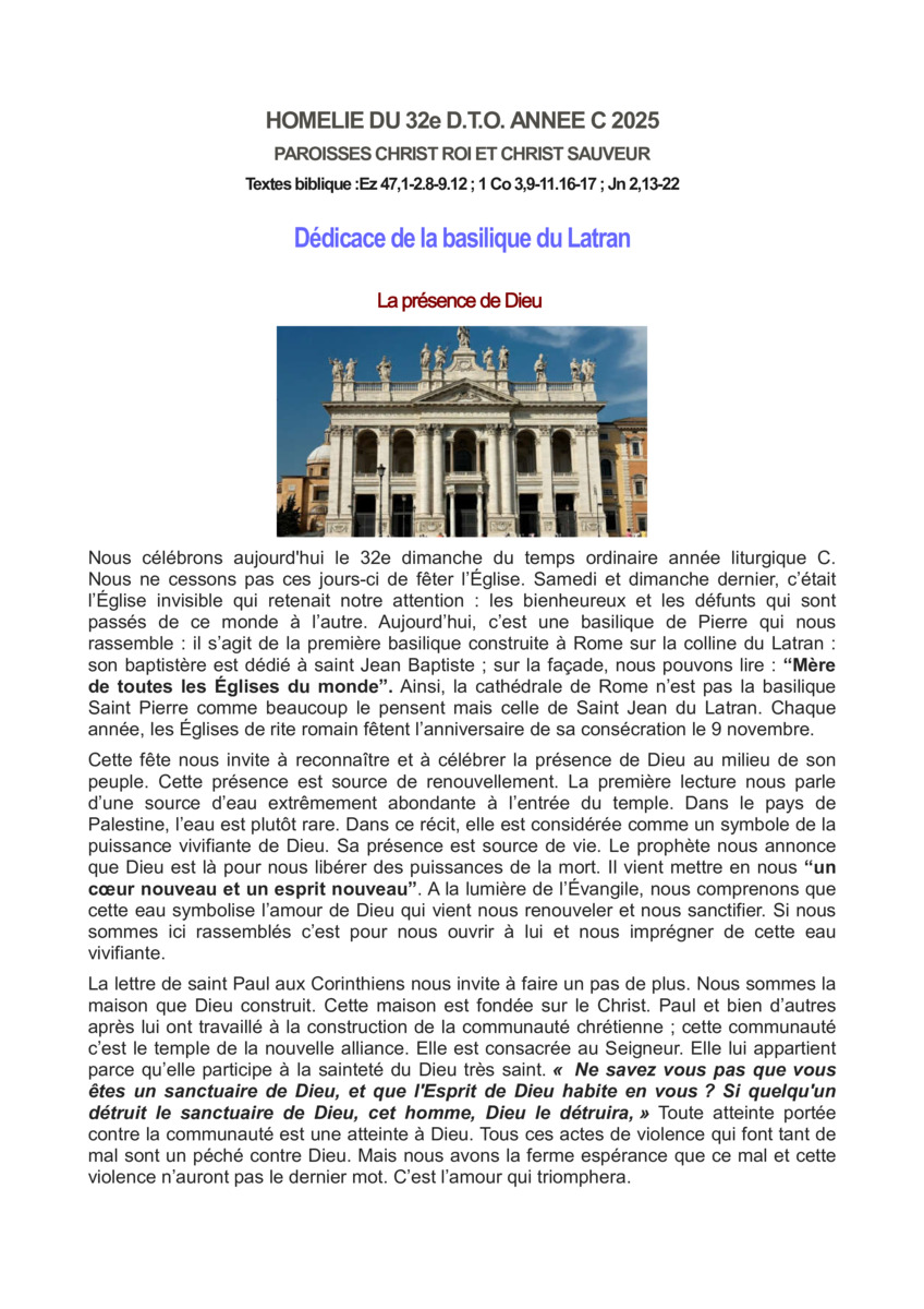 Retrouvez ci-dessous l'homélie du 32ème dimanche du temps ordinaire Année C 2025 du Père José Marie NTUMBA