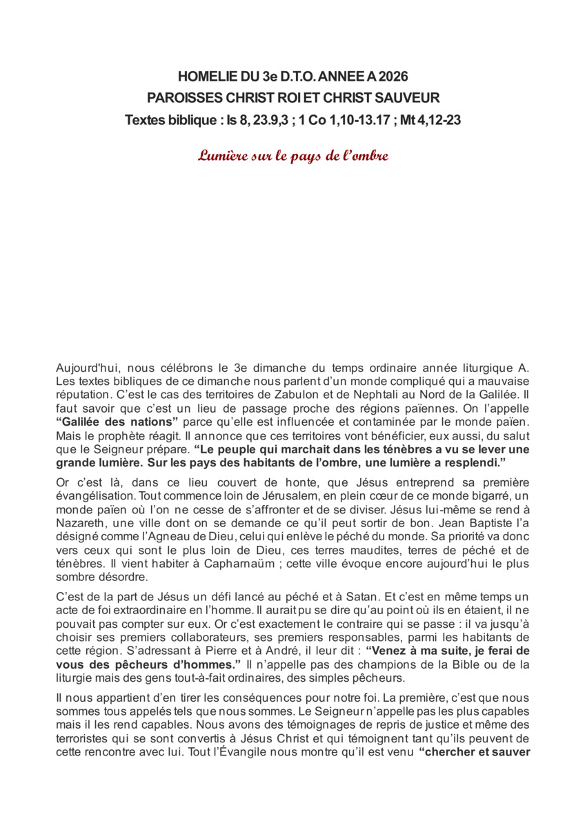 Homélie du 3ème dimanche du temps ordinaire Année A 2026