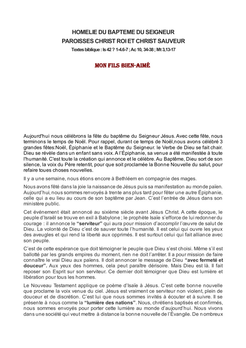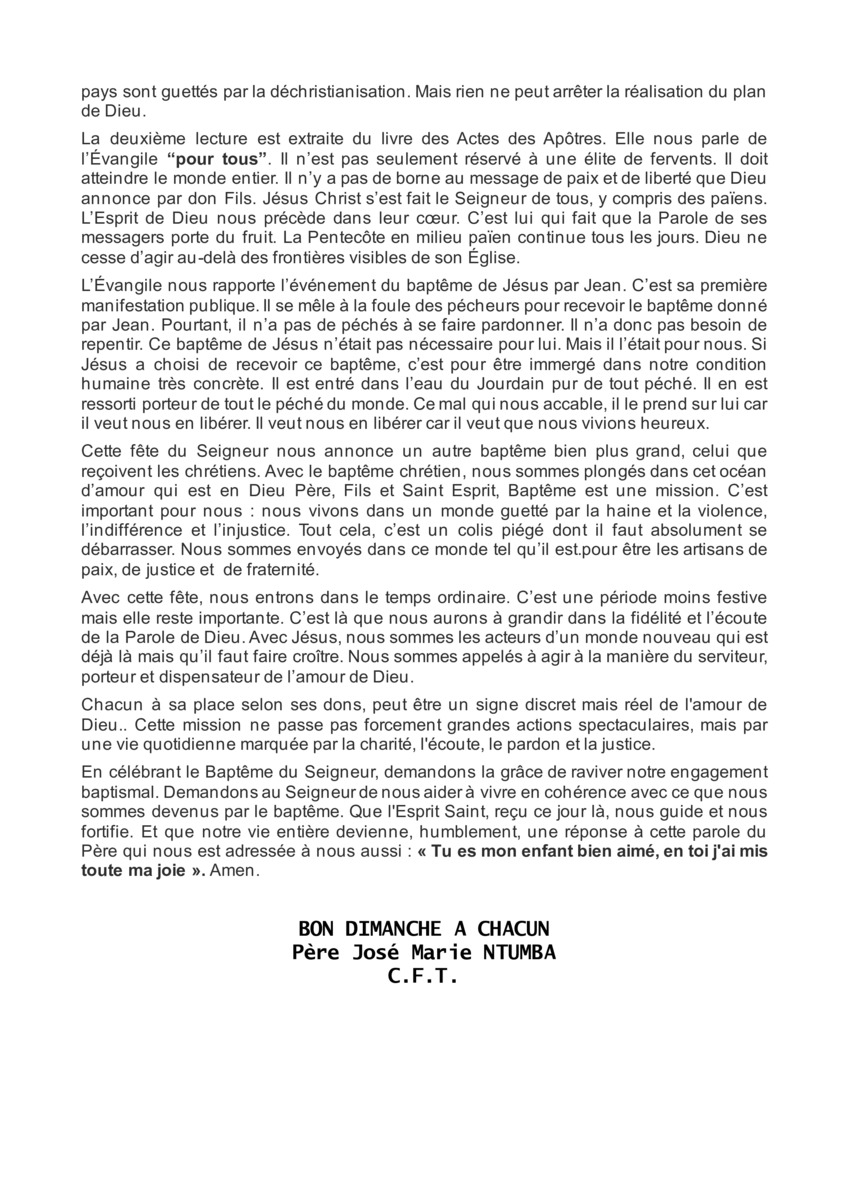 Retrouvez ci-dessous l'homélie du Baptême du Seigneur Année A 2026 du Père José Marie NTUMBA