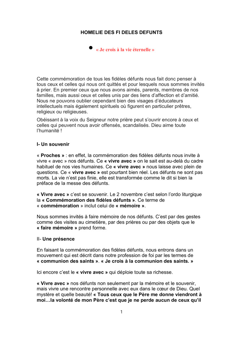 Homélie de la commémoration des Fidèles Défunts Année C 2025