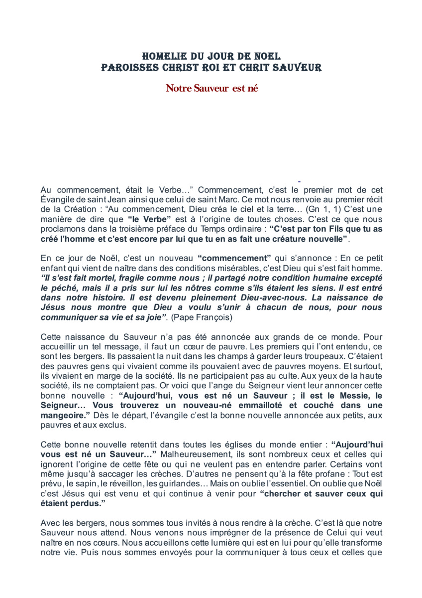 Retrouvez ci-dessous l'homélie du jour de Noël Année A 2025 du Père José Marie NTUMBA