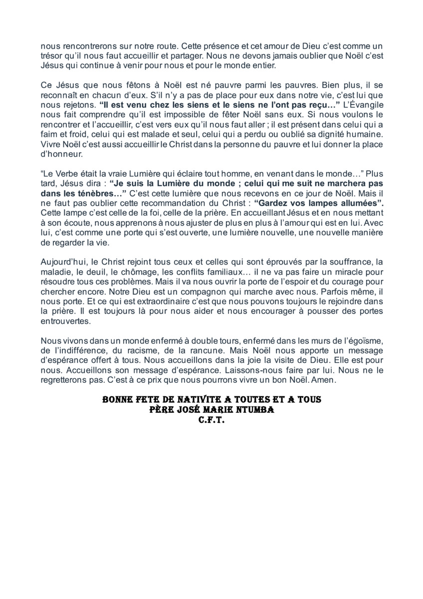 Homélie du Père José Marie NTUMBA/Cft