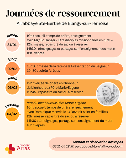 Du 31 janvier au 4 février 2026, des journées de ressourcement sont proposées à l’abbaye Sainte-Berthe de Blangy-sur-Ternoise