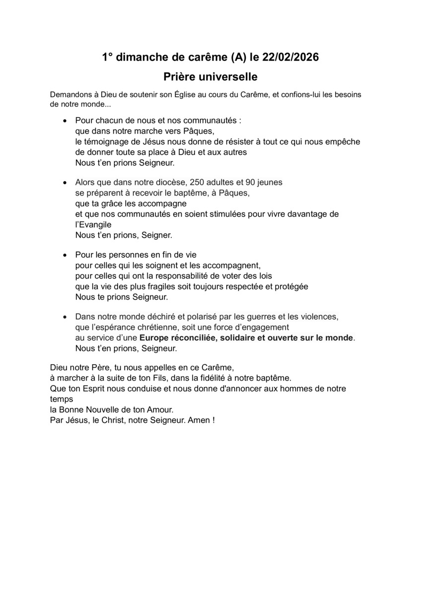 En ce temps-là, Jésus fut conduit au désert par l’Esprit pour être tenté par le diable. Après avoir jeûné quarante jours et quarante nuits, il eut faim. Le tentateur s’approcha et lui dit : « Si tu es Fils de Dieu, ordonne que ces pierres deviennent des pains. » Mais Jésus répondit : « Il est écrit : L’homme ne vit pas seulement de pain, mais de toute parole qui sort de la bouche de Dieu. »