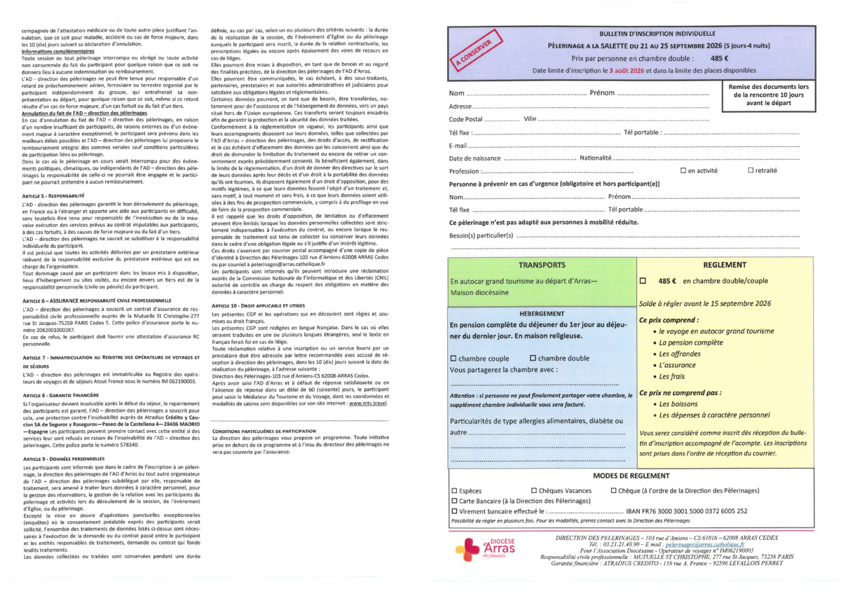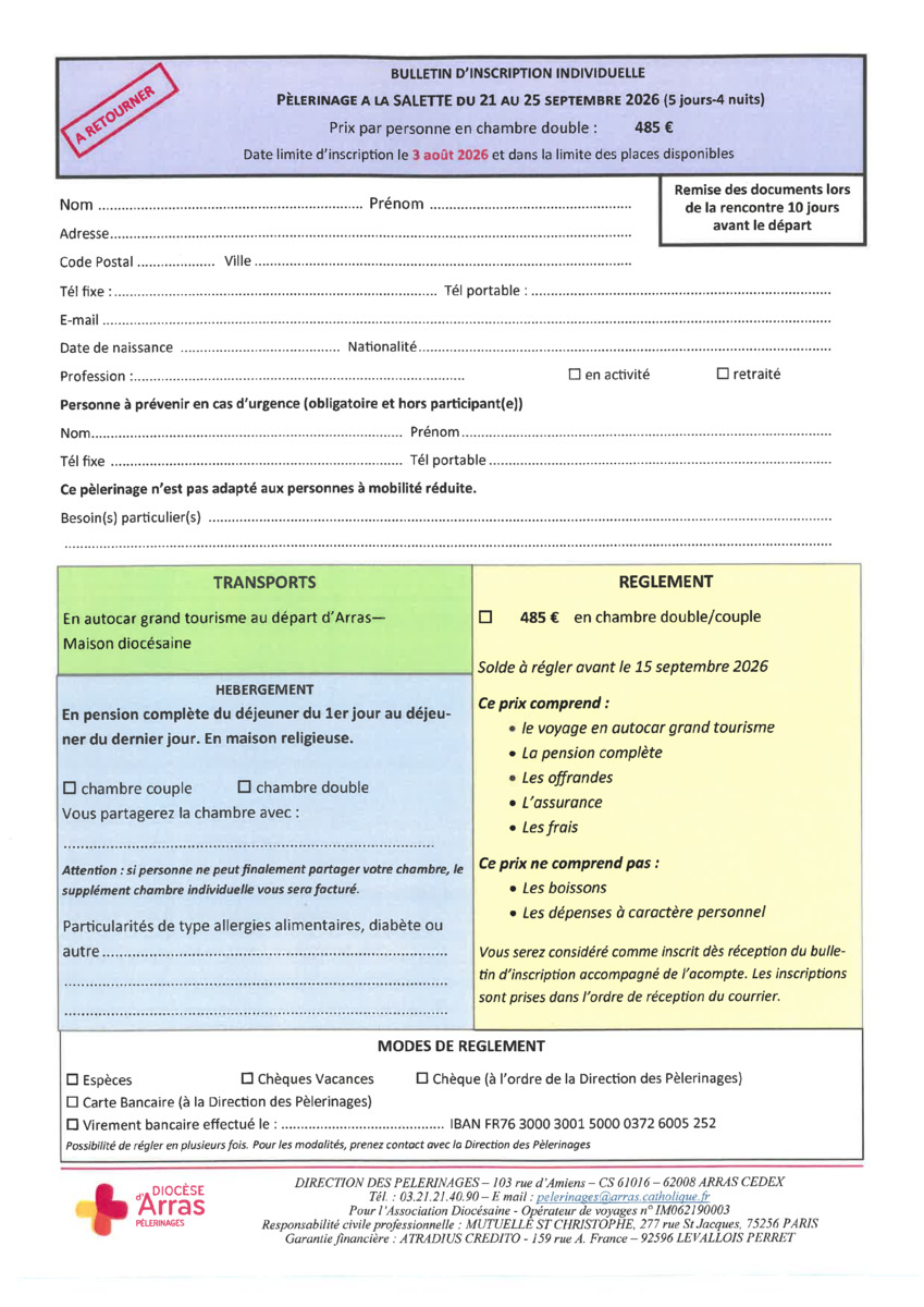 Pèlerinage en autocar grand tourisme au départ d'Arras.