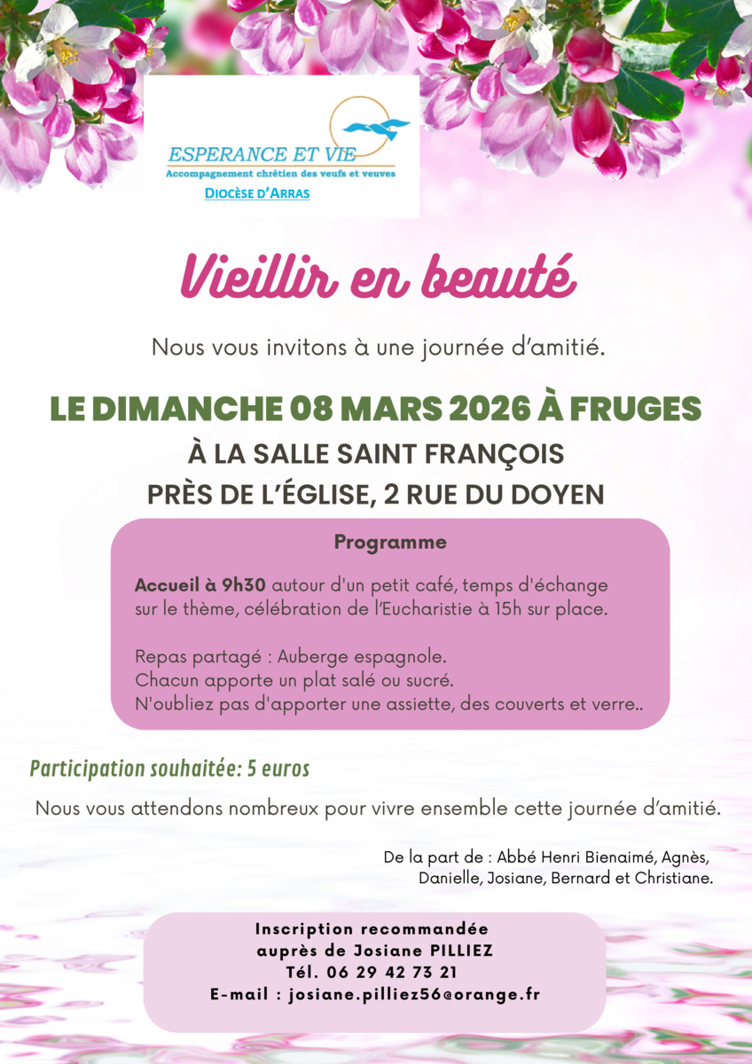 Invitation aux personnes endeuillées, veufs et veuves ; un temps pour rencontrer, échanger, prier.