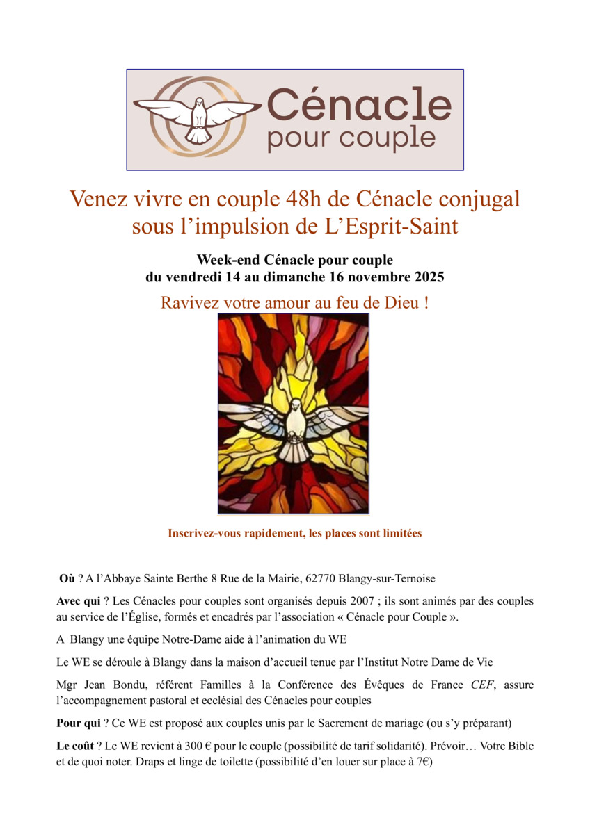 Venez vivre en couple 48h de Cénacle conjugal sous l’impulsion de L’Esprit-Saint
